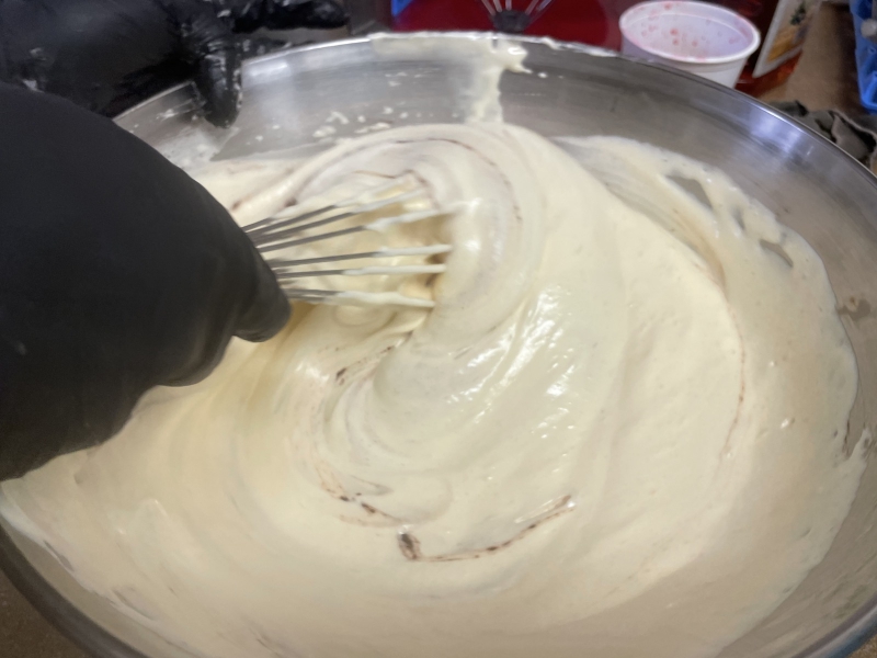 Incorporer la gélatine ramollie et égouttée dans la préparation encore chaude. Bien mélanger.